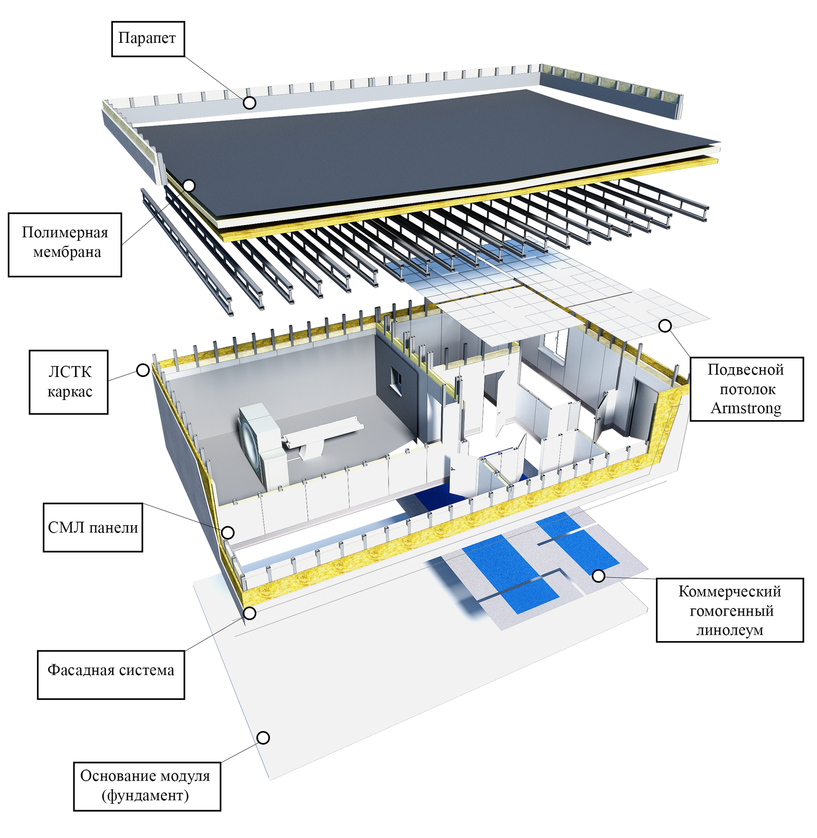 Модульное здание – сборное, быстромонтируемое строение из металлоконструкций, которое может быть возведено как пристрой к основному зданию или как отдельно стоящее здание.